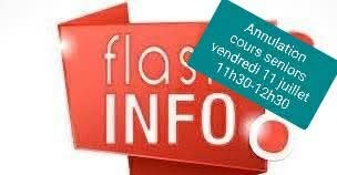 Bonjour à tous Le cours senior de Sophie du vendredi 11 juillet de 11h30-12h30 est annulé. Très belle journée à tous