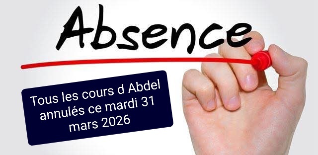 Les cours d’Abdel sont annulés ce mardi 31 mars!