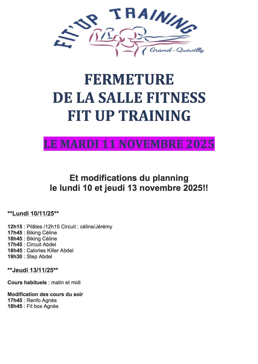 INFOS FIT UO TRAINING POUR LA SEMAINE DU 10 AU 16 NOVEMBRE 2025