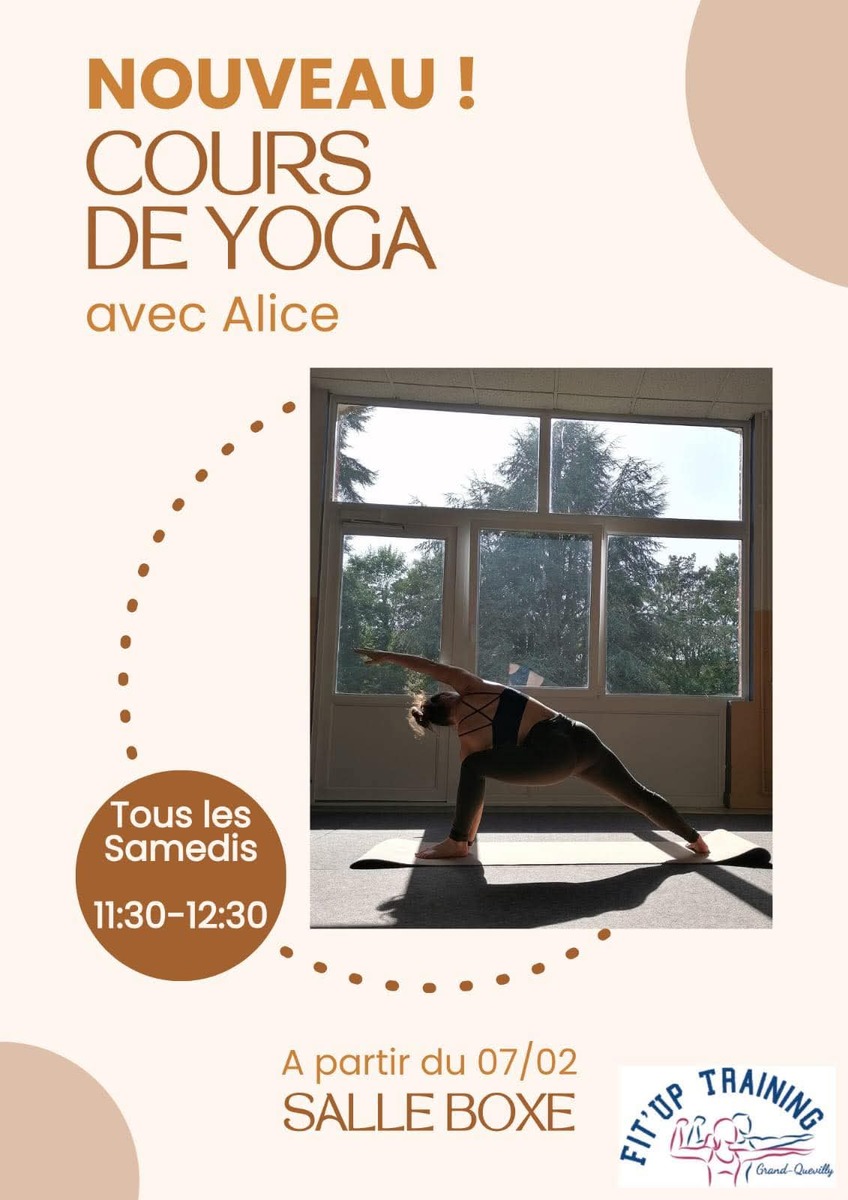 Alice vous propose une nouvelle activité,le Yoga, les cours commencent ce samedi 07 Février de 11h30 à 12h30 à l’étage.