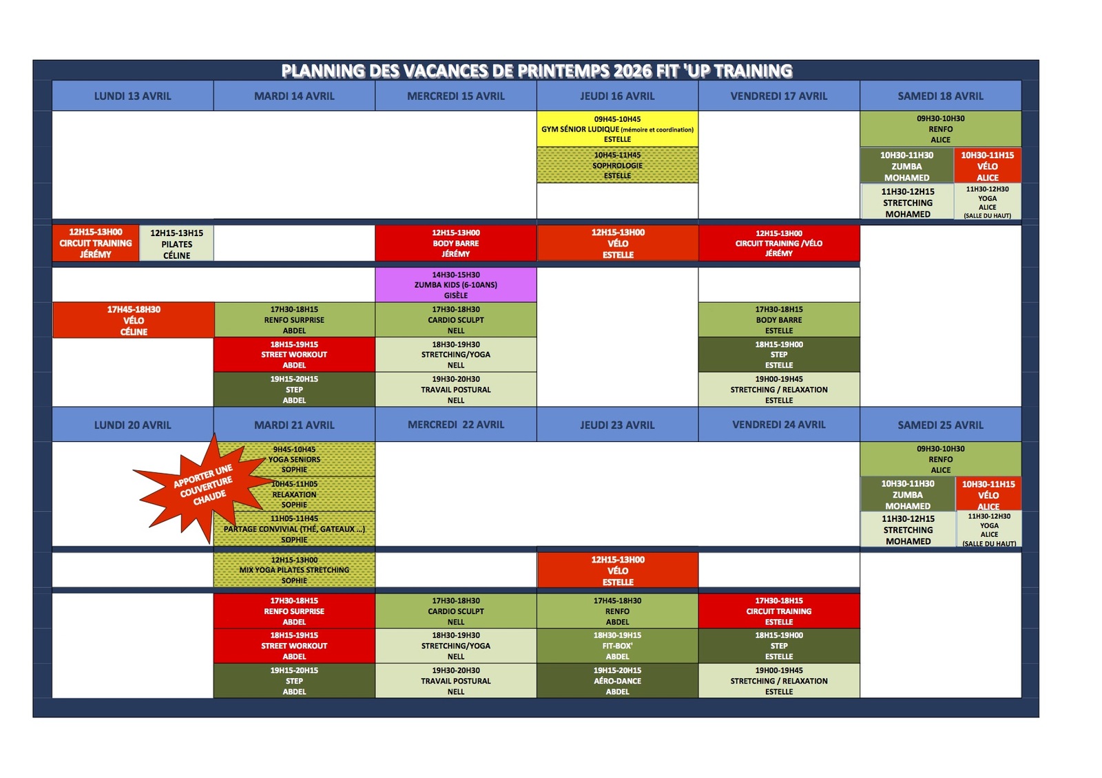 COURS ANNULÉ D ABDEL CE MARDI 31 MARS ET CHRIS REMPLACE AMINATA EN ZUMBA