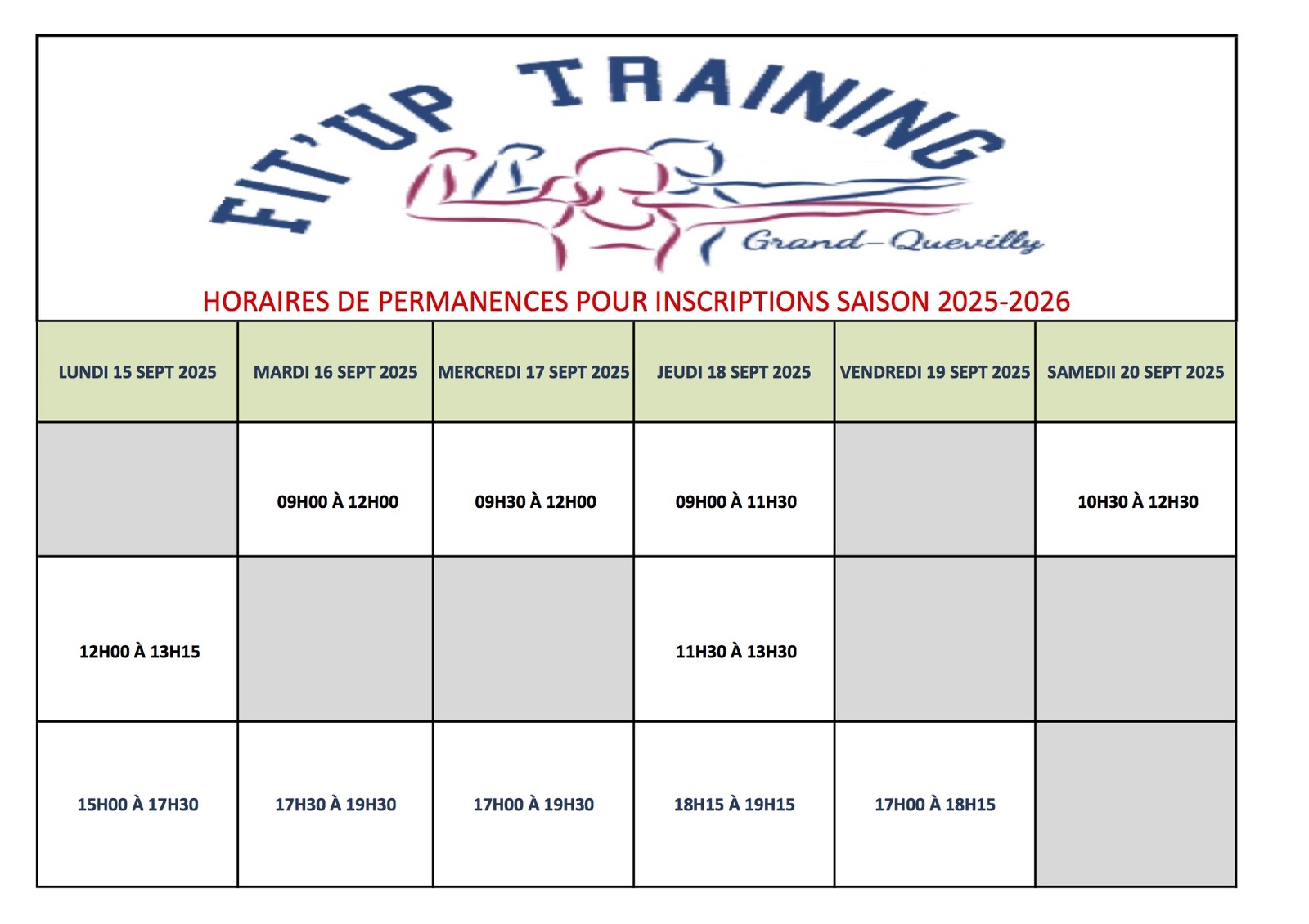 PLANNING DES INSCRIPTIONS DU 8 AU 13 SEPTEMBRE 2025